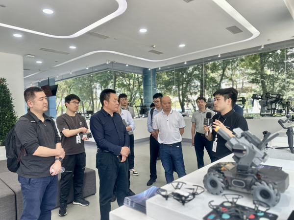 (合影:右七为湖南省自然资源厅地理信息处一级调研员杨水冰在大疆总部调研)
