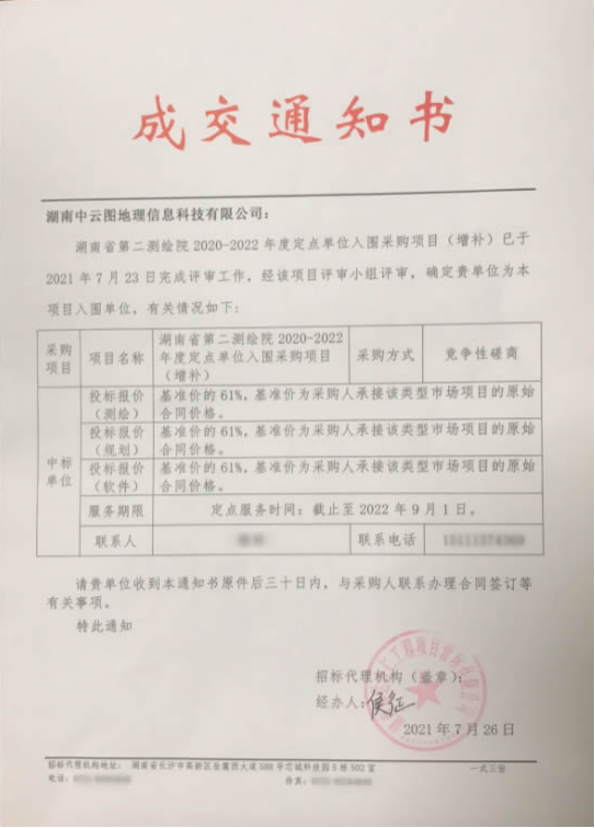 近日,我司分别中标“湖南省******测绘院2021-2023年定点协助单位采购(标段一:测绘)”及“湖南省第二测绘院2020-2022年度定点单位入围采购项目(增补)。